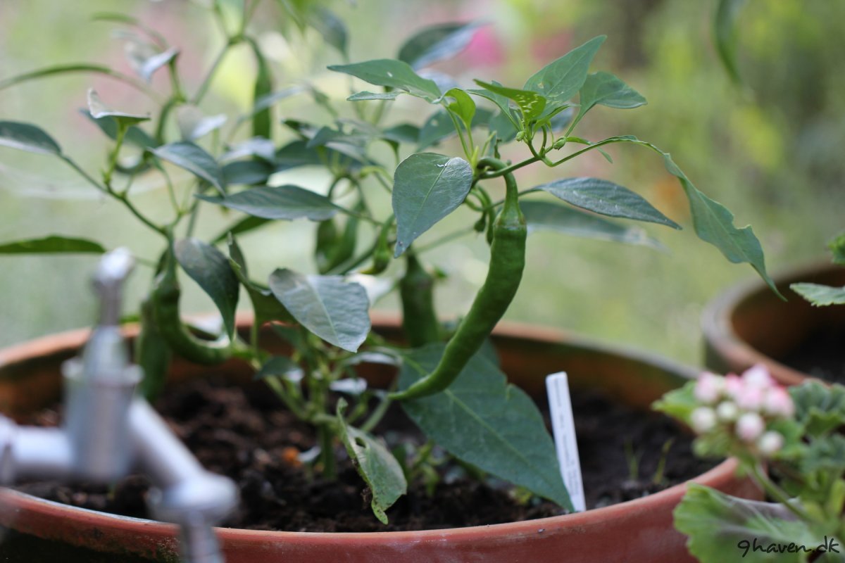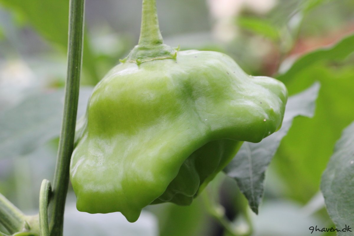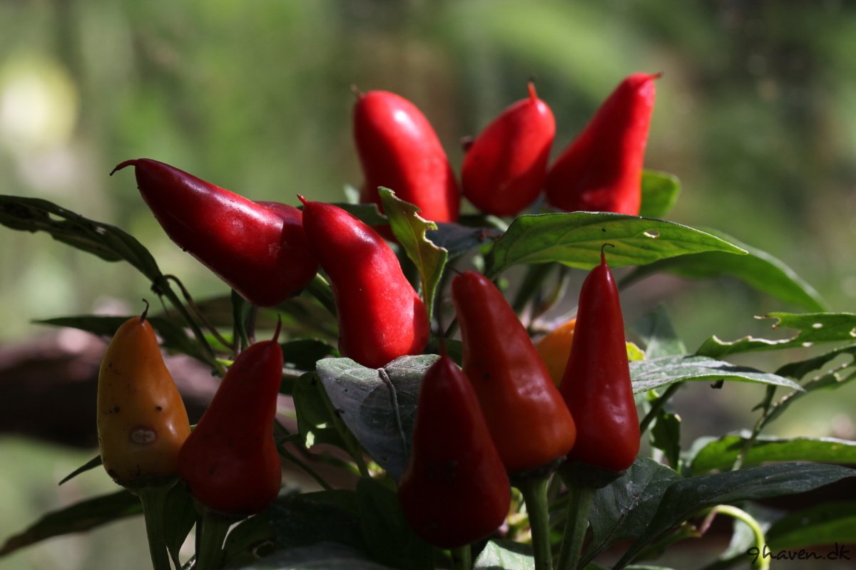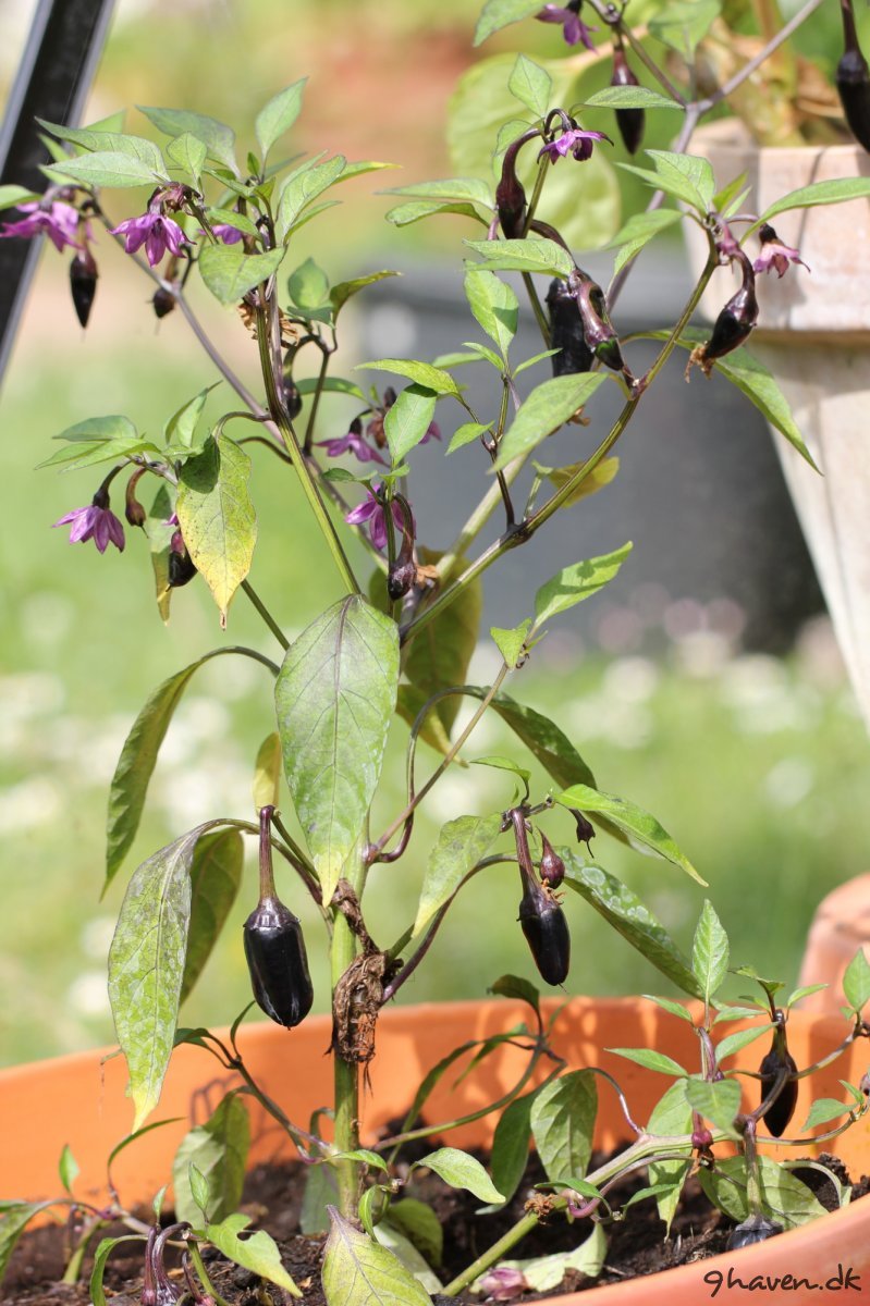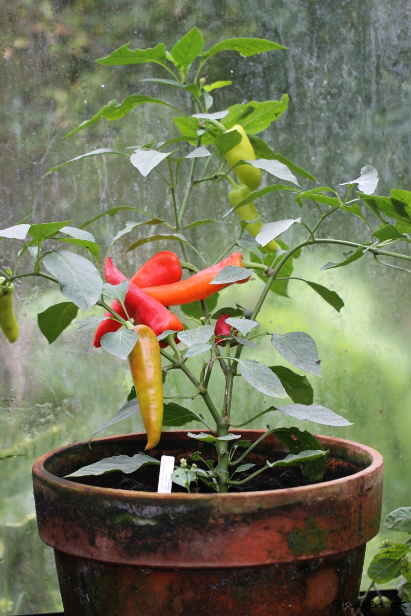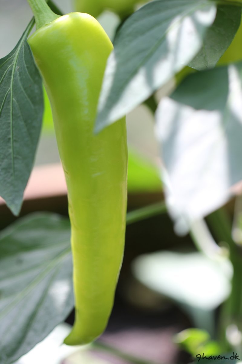 I drivhuset er der bla. 11 chili planter, 6 tomater, 1 agurk og 1 aubergine