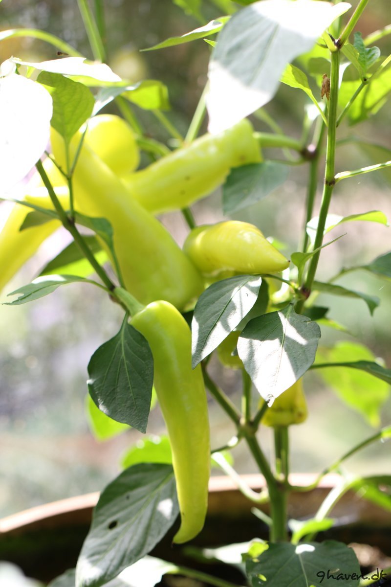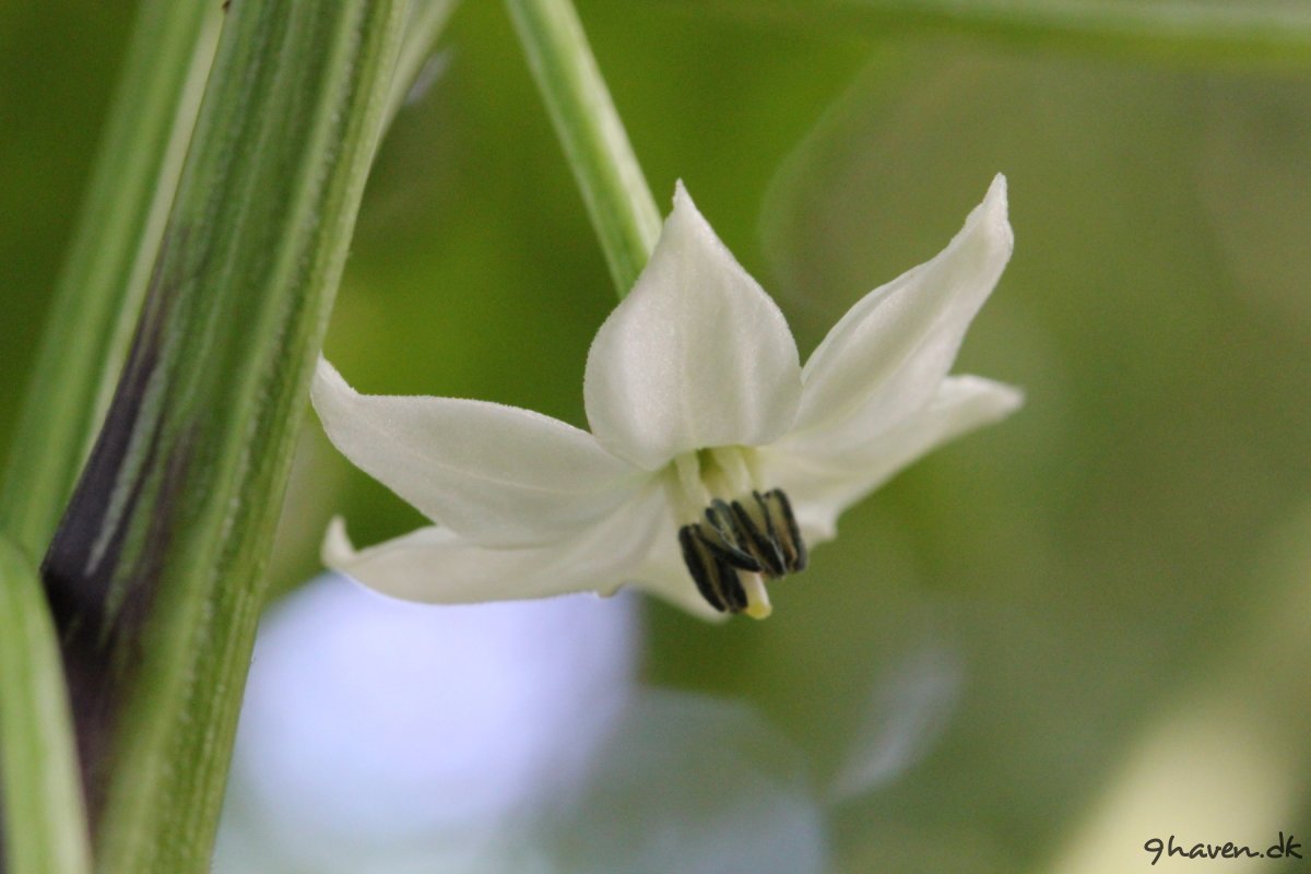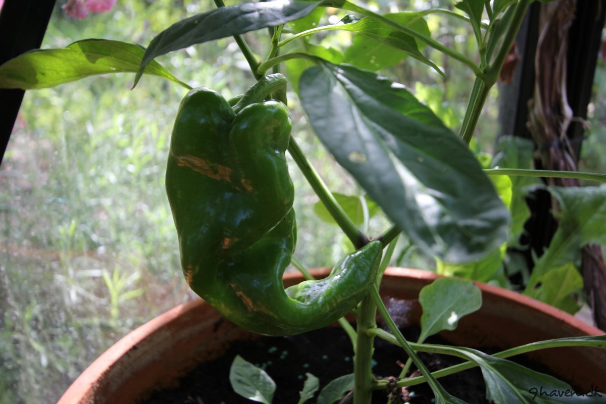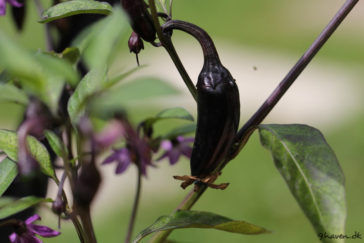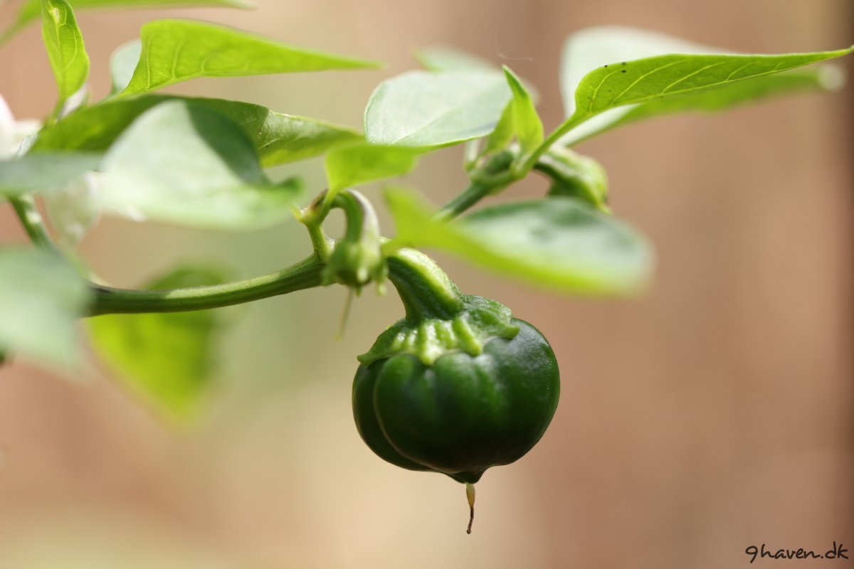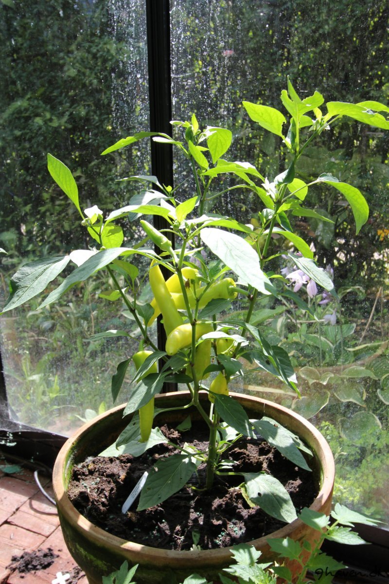 I drivhuset er der bla. 11 chili planter, 6 tomater, 1 agurk og 1 aubergine