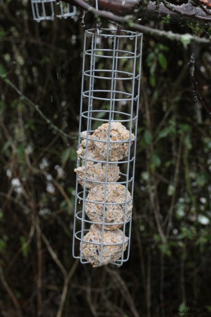 Fuglene spiser lystigt af de mejsebolde jeg har hængt op.