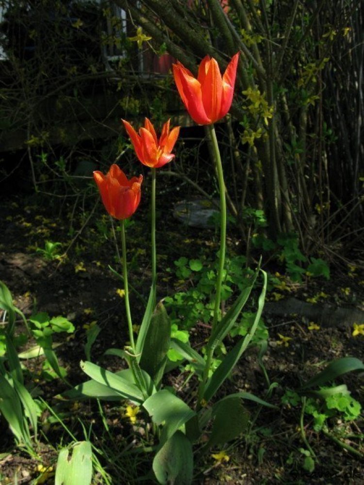 Mine påskeliljer i haven er begyndt at blomstre og mange steder i haven er bonderoserne kommer med store skud.