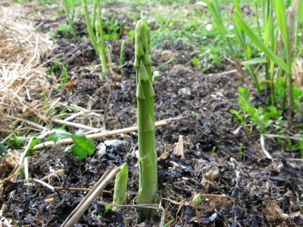 De første asparges er begyndt at titte frem og så har jeg fået sat min lille springvandsfrø til pumpen.