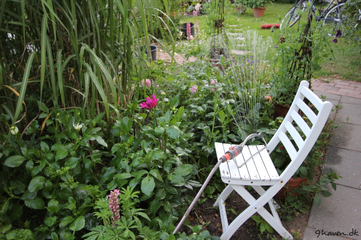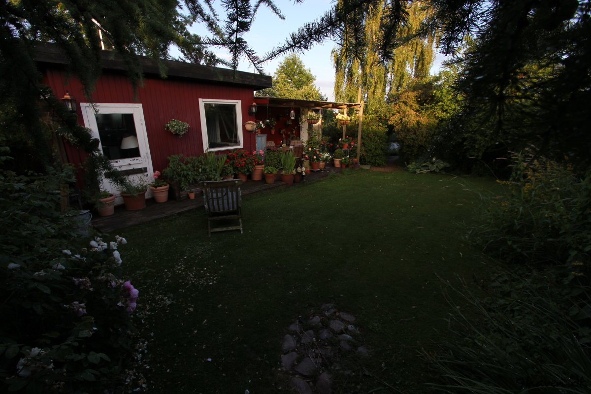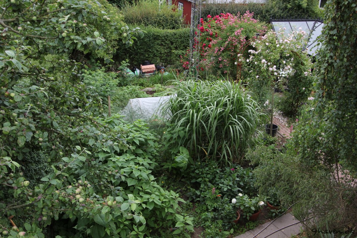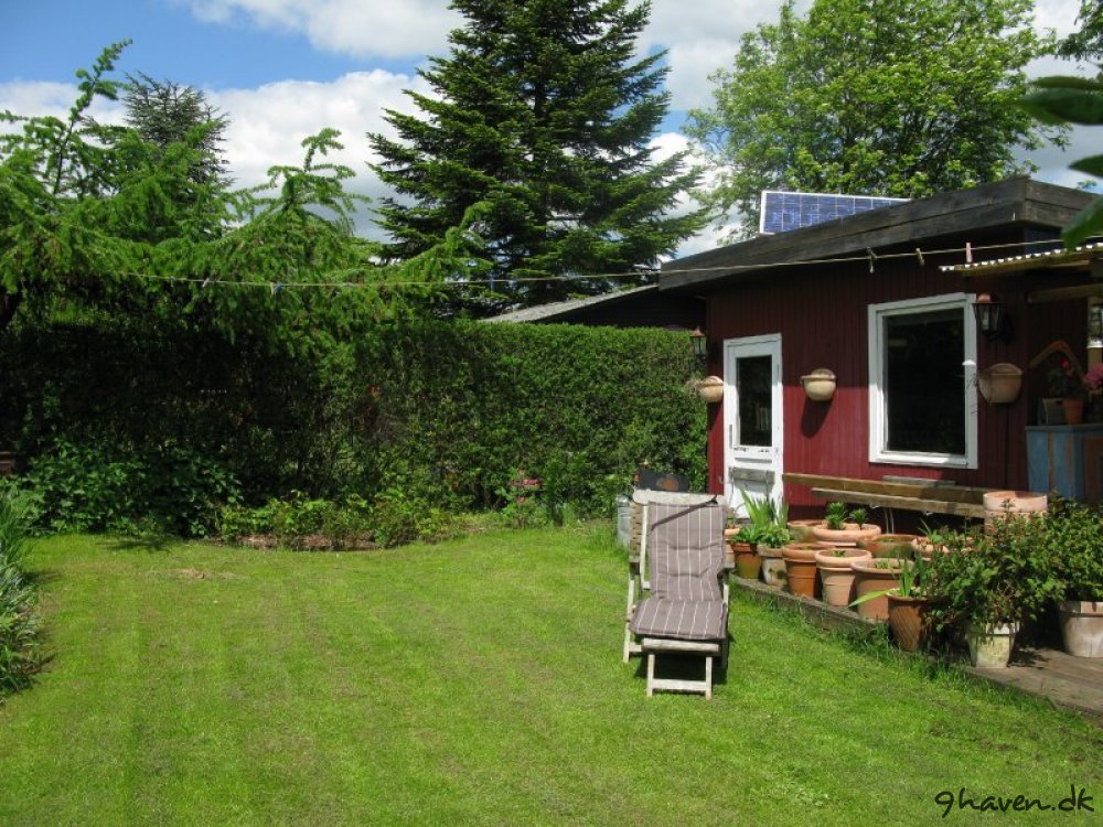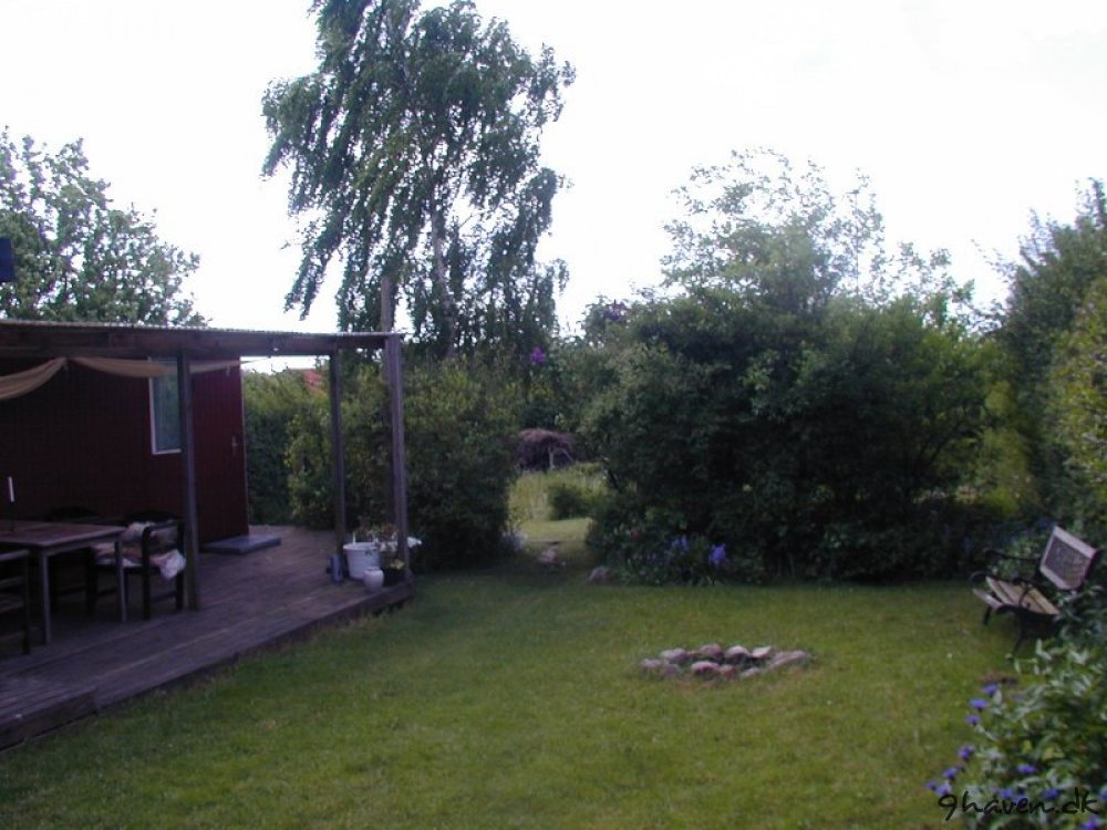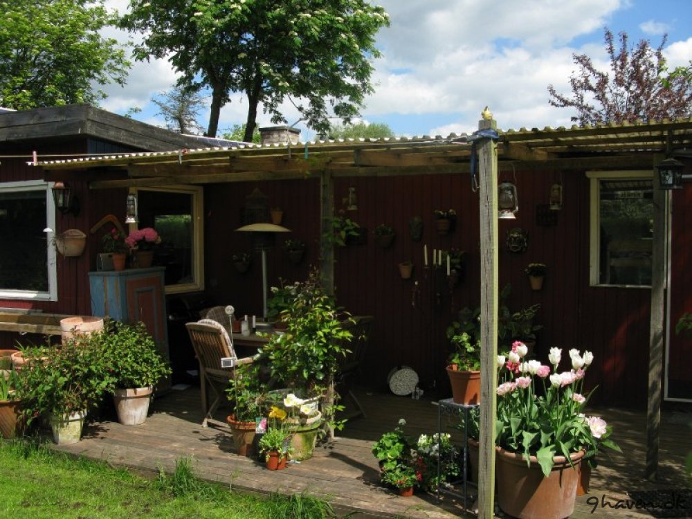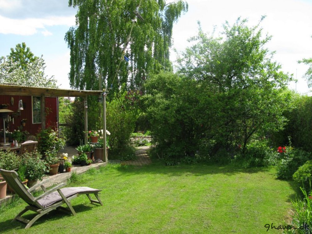 Her er et par før og efter billeder. Meget er sket i haven….Der er kommet en vindmølle, anlagt en køkkenhave og et rosenbed, flyttet en bålplads, anskaffet en masse krukker og så lige tilføjet et drivhus.